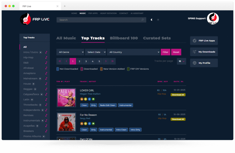 FRP Live – A customized software for Music Industry Empowers DJs with emotional, Billboard, and popular track data for playlists. Advanced search for DJs: Keywords,…